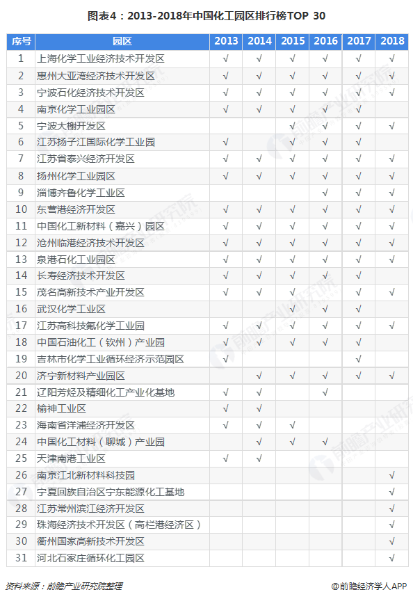 ? ? 2018年中國化工園區排行榜TOP 30,集中分布在東部沿海地區