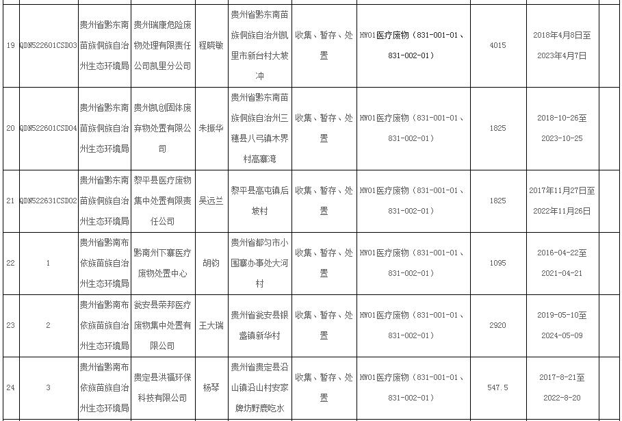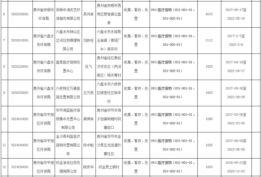 1、貴州省30家醫(yī)療廢物處置企業(yè)名單