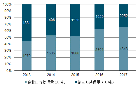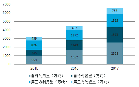 2015-2017年第三方危廢處理企業(yè)利用量及處置量
