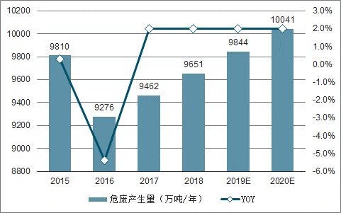 2015-2020年中國(guó)危廢產(chǎn)生量及預(yù)測(cè)