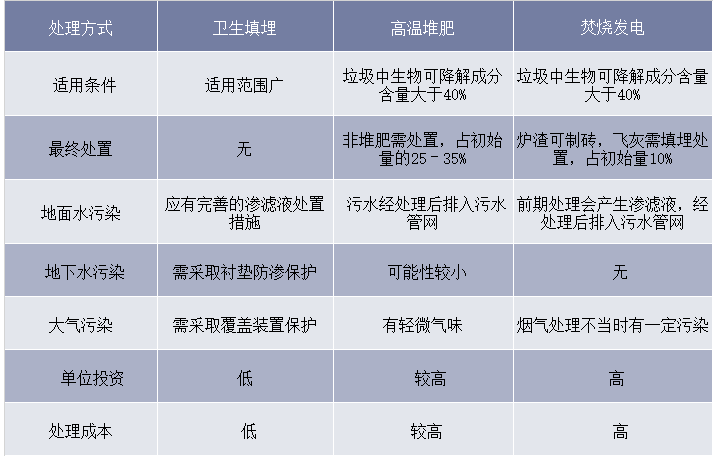 ? ? 從生活垃圾無害化處理方式來看,目前我國生活垃圾無害化處理的方式主要有三種:衛生填埋、焚燒和高溫堆肥,對比三種垃圾無害化處理方式,和傳統的堆肥、填埋相比,焚燒具有處理效率高、占地面積小、對環境影響相對較小等優點,更能滿足城市生活垃圾處理對減量化和無害化的要求。