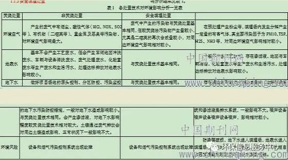 ? ? 根據上述的不同處置技術的工藝及產污情況,所產生的污染情況不同,對環境影響的作用方式及影響程度也不同,各處置技術可能造成的環境影響分析結果見表1。