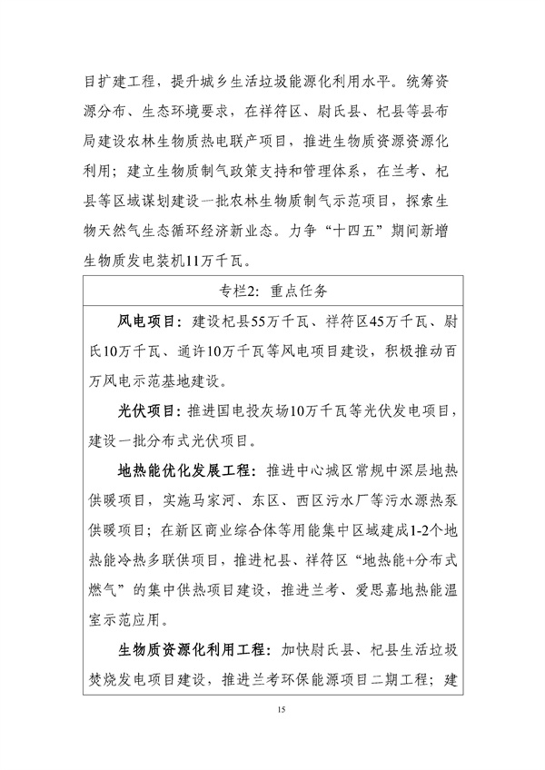 日前,河南開封就《開封市“十四五”現代能源體系和碳達峰碳中和規劃(征求意見稿)》公開征求意見,該規劃指出,穩步提升生物質利用水平,結合開封市生活垃圾處理設施規模能力、地理位置等因素,完善滿足全市城鄉生活垃圾“無害化”處理需求的“收-儲-運-用”體系,加快尉氏、杞縣等區域清潔高效生活垃圾焚燒發電項目建設,推進蘭考生活垃圾焚燒發電項目擴建工程,提升城鄉生活垃圾能源化利用水平。統籌資源分布、生態環境要求,在祥符區、尉氏縣、杞縣等縣布 局建設農林生物質熱電聯產項目,推進生物質資源資源化利用;建立生物質制氣政策支持和管理體系,在蘭考、杞縣等區域謀劃建設一批農林生物質制氣示范項目,探索生物天然氣生態循環經濟新業態。力爭“十四五”期間新增生物質發電裝機11萬千瓦。詳情如下: