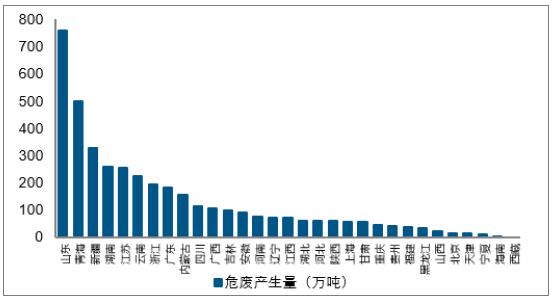 ? ? 二、危廢跨省轉移限制加劇了處理能力區域不平衡,青海地區缺口最大