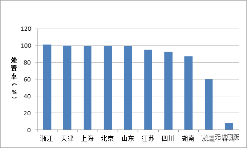 ? ? 其中,青海處置率最低,僅有8.3%,浙江、天津等地處置率均超過100%。