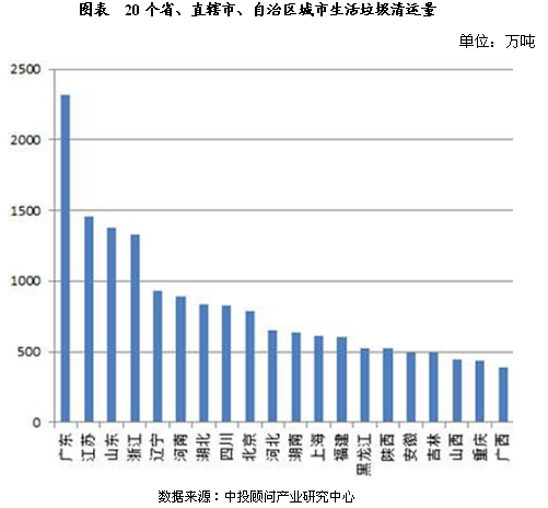 ? ? 中投顧問發布的《2018-2022年中國生活垃圾處理行業深度調研及投資前景預測報告》數據顯示:2016全國生活垃圾清運量約為21500.5萬噸。