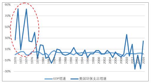? ? 歐美國家在環保領域一般都經歷了“經濟發展——環境污染——污染治理”這一過程。從國際經驗來看,在環保產業發展初期,行業增速非常快。以美國為例,其環保政策在1970年前后密集出臺,此后的近20年時間行業增速都在20%以上,此后隨著環境狀況有所改善,政策方向由行政手段轉為更多依靠市場手段,環保產業投資增速才下滑至10%以下。相似的情況也發生在日本,1971-1979年是日本環保產業的第一輪快速增長,這段時間主要集中于治理工業污染,期間治污總支出占財政支出比重從0.76%逐步提升至2.35%。隨著之后生活污染問題的凸現,1990-1999進入第二輪快速增長期,這段時間環保支出占財政支出比例進一步升至3.1%。