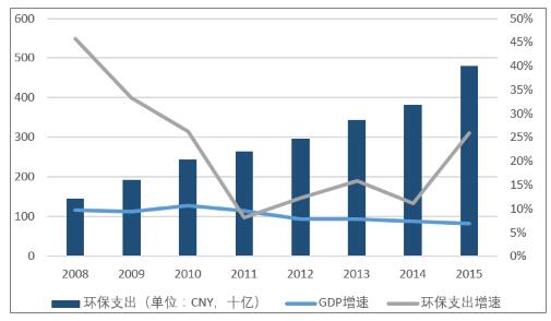 ? ? 我國2015年環保投入占GDP的比例為1.6%,基本屬于總量控制階段。如果要達到十三五規劃的環境質量改善目標,環保投入占GDP比重有望上升至3%左右。對應十三五期間年均增速有望超過30%。