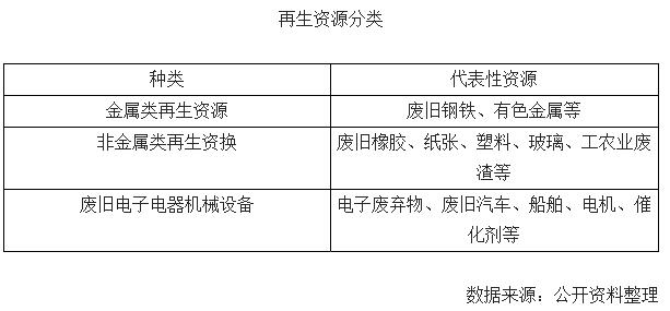 ? ? 再生資源是指在人類的生產、生活、科教、交通、國防等各項活動中被開發利用一次并報廢后,還可反復回收加工再利用的物質資源。從類型來看,主要包括三大類:金屬類再生資源、非金屬類再生資源和廢舊電子電氣機械設備。