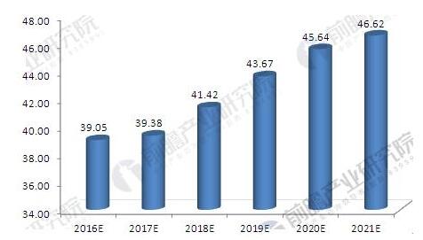 2016-2021年中國工業(yè)固體廢物產生量情況預測(單位:億噸)